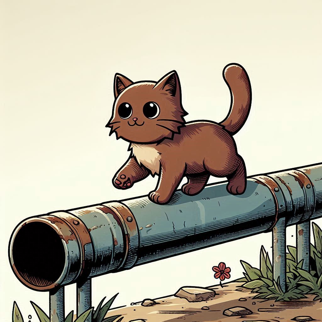 주인공은 크고 노란 눈을 가진 사랑스럽고 어린 고양이다. 풍경을 가로질러 달리거나 수영하는 고양이는 겁이 많지만 때로는 용맹하다.